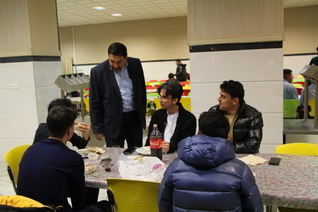 دکتر معصومی نیا در جریان دیدار چهره به چهره و گفتگوی صمیمی با دانشجویان در جریان دغدغهها و مشکلات دانشجویان و مسائل مربوط به دانشگاه به خصوص خوابگاه دانشجویی و سلف سرویس قرار گرفه و بر اهمیت تامین رفاه دانشجویان به عنوان بخشی از مأموریت دانشگاه تأکید کرد.