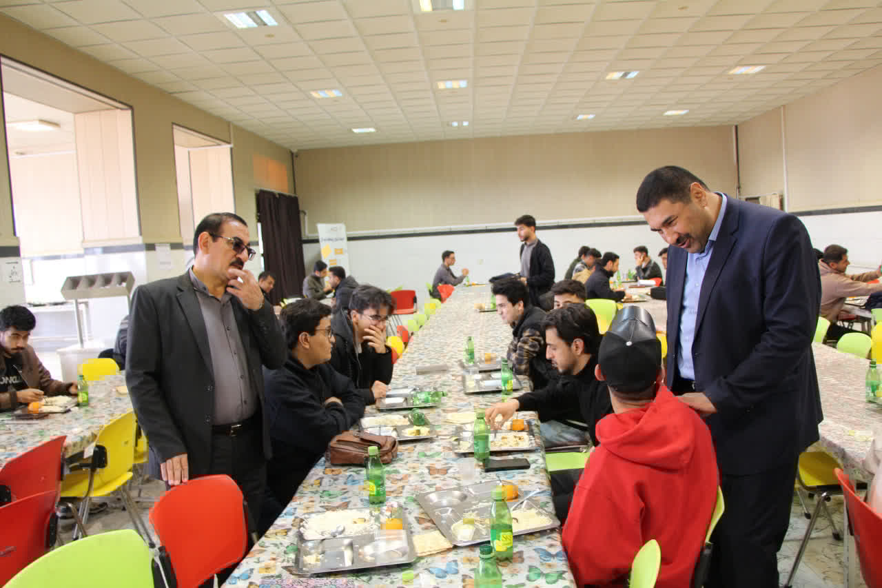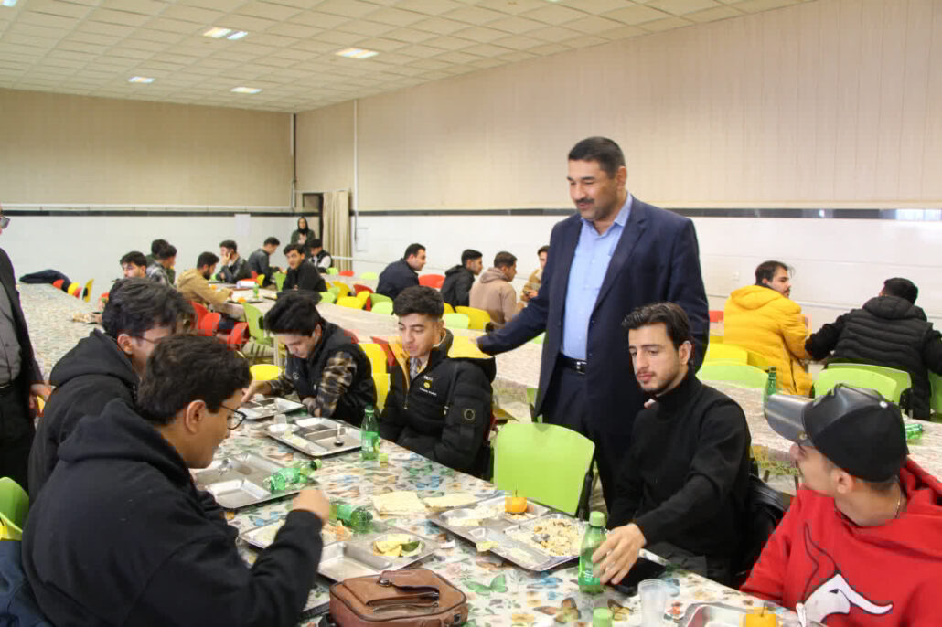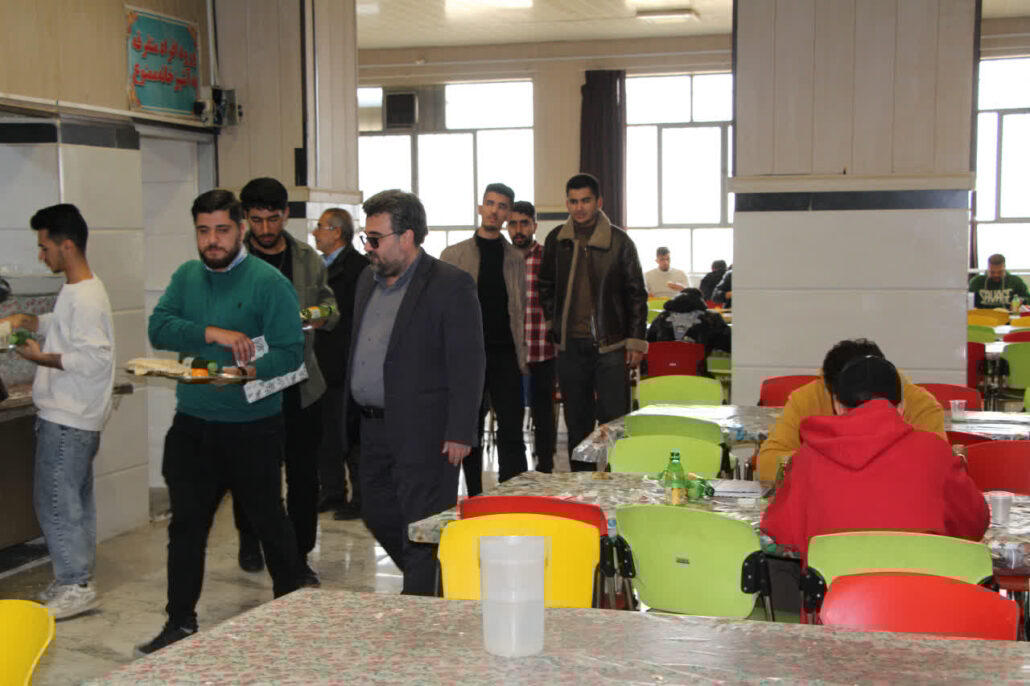 در این بازدید صمیمی، دکتر معصومینیا ضمن گفتوگو با دانشجویان، از نزدیک در جریان کیفیت خدمات رفاهی و غذایی دانشگاه قرار گرفت و نهار خود را در کنار دانشجویان صرف کرد.